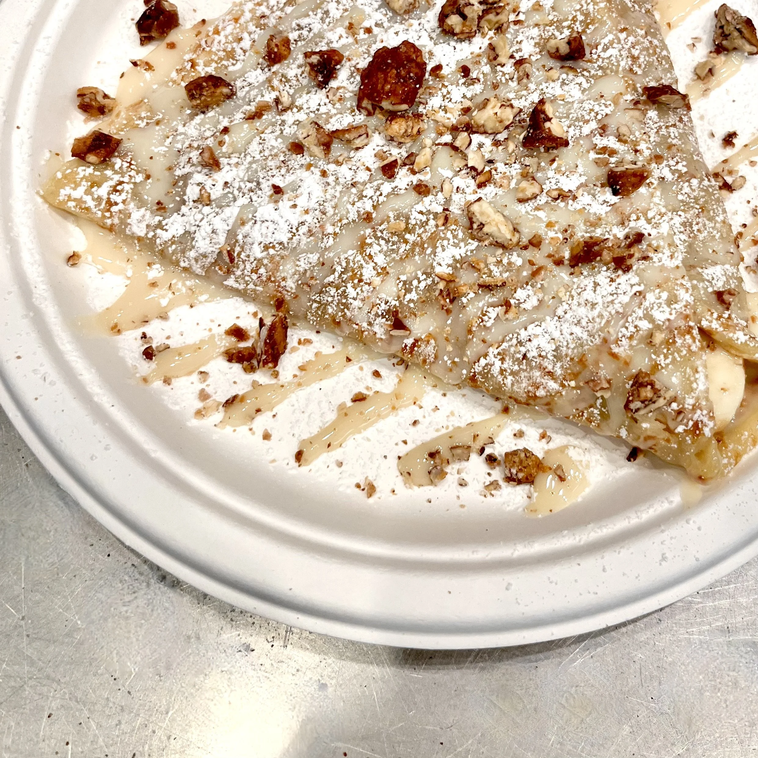 “These crepes are delicious!! Split a savory breakfast crepe and a sweet crepe for brunch and was amazed by both! The crepes are nicely sized, lots of flavor, and filling! The service was friendly and quick as well!”